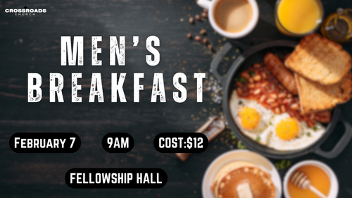 Crossroads Men, join us and bring a friend to our Men's Breakfast on